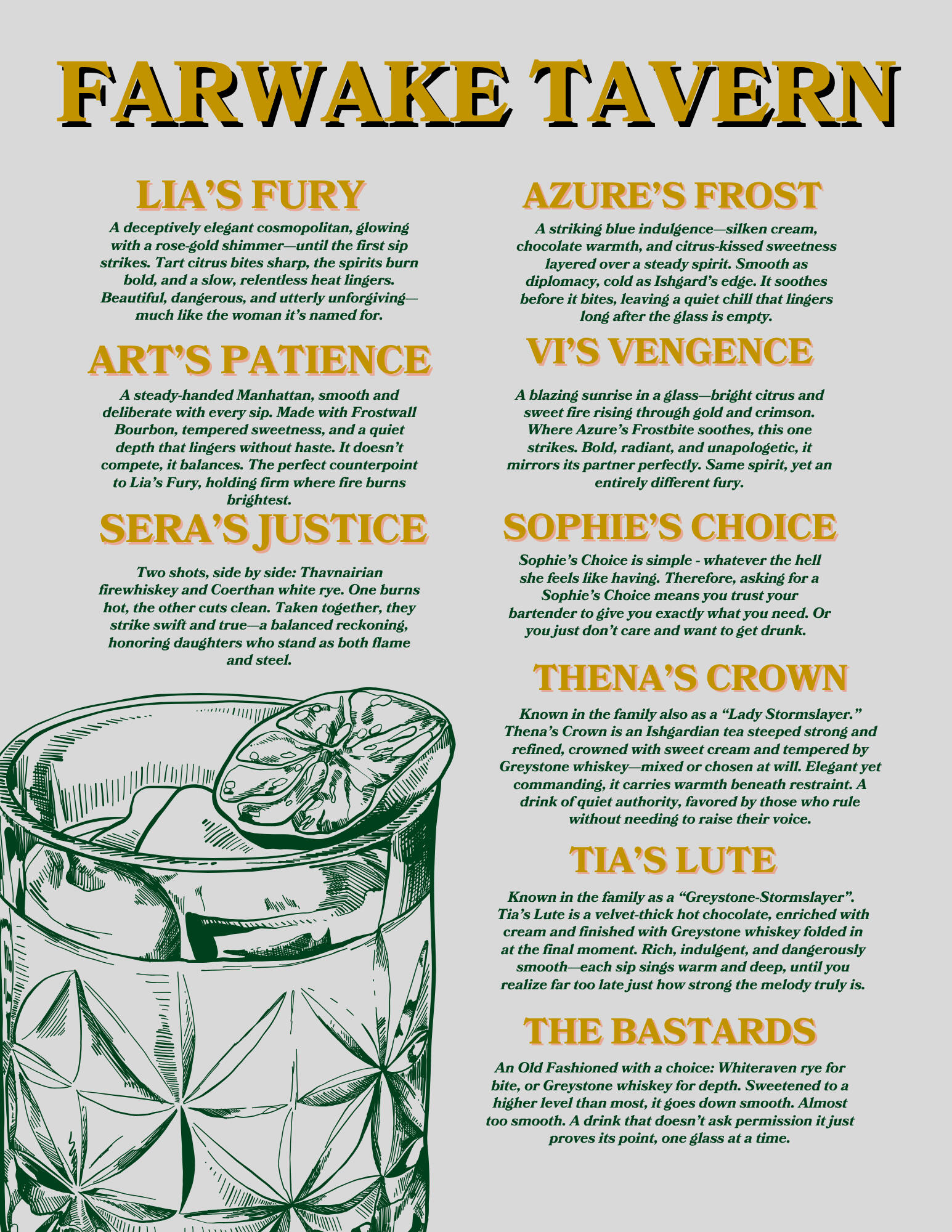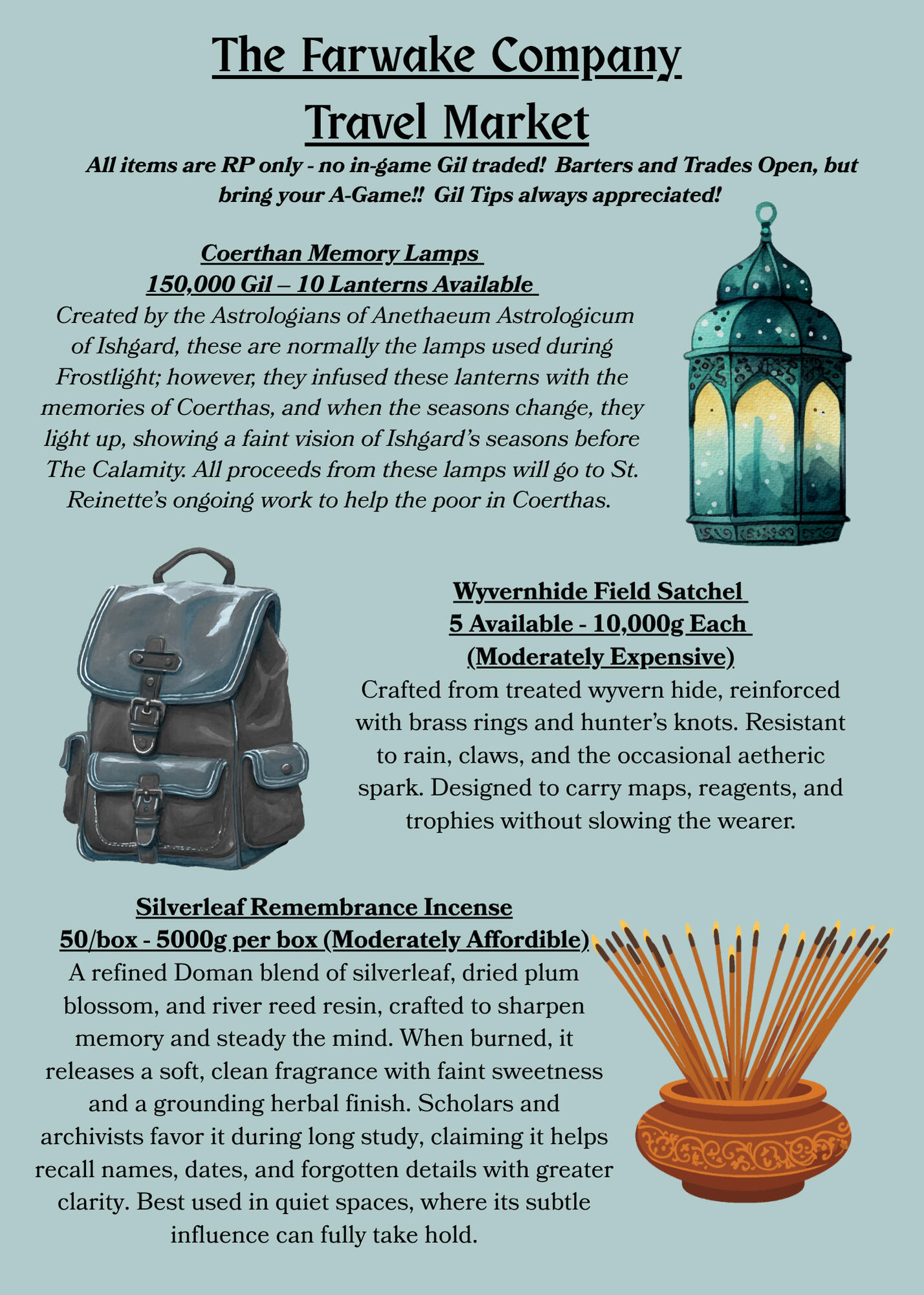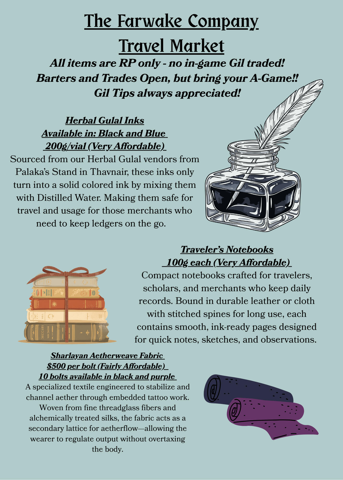 Separate from Stormslayer in name, business, and ledgers. Farwake operates on a simple truth: trade isn’t clean. It’s sharp, calculated, and real. And while it may be leaner than its parent house, it’s just as ambitious, driven by the belief that legacy should never hold back progress.